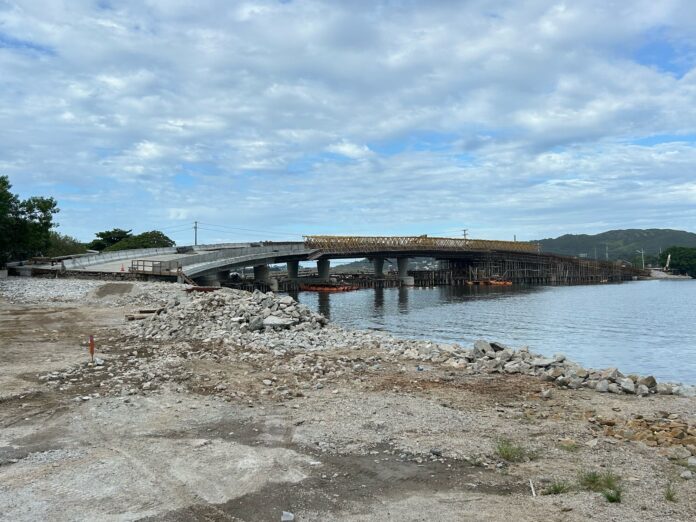 Desde que as obras da ponte iniciaram, em abril de 2023, também já foram concluídos os dois aterros em rocha que vão abrigar as cabeceiras da ponte, tanto do lado do Centrinho, perto de onde será a rótula do sistema viário de acesso à futura travessia, quanto do lado oposto da lagoa, próximo da Avenida das Rendeiras; os estaqueamentos de madeira para escoramento da estrutura da plataforma equivalente à futura pista; os estaqueamentos metálicos das fundações dos blocos/pilares de sustentação, e a construção dos nove blocos/pilares(tanto esse último quanto o primeiro pilar ficam no nível das duas cabeceiras da ponte). Além de já ter sido finalizada a concretagem das pistas do segundo segmento.
