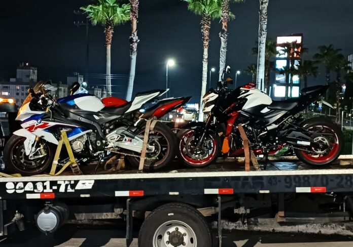 Policiais rodoviários federais flagraram na noite desta quinta-feira (21), na BR-101 em São José e Palhoça, cinco motocicletas equipadas com dispositivos móveis para esconder a placa de identificação.