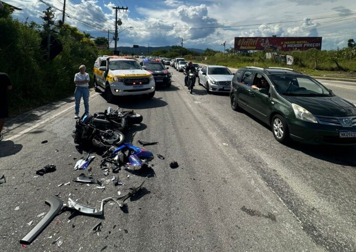Um motociclista ficou gravemente ferido em acidente registrado pela Polícia Militar Rodoviária (PMRv) às 14h30min desta quinta-feira (25), no km 1.200 da rodovia SC-281, em São José. A colisão envolveu o veículo Jeep Renegade Sport MT e a moto JTA/Suzuki.