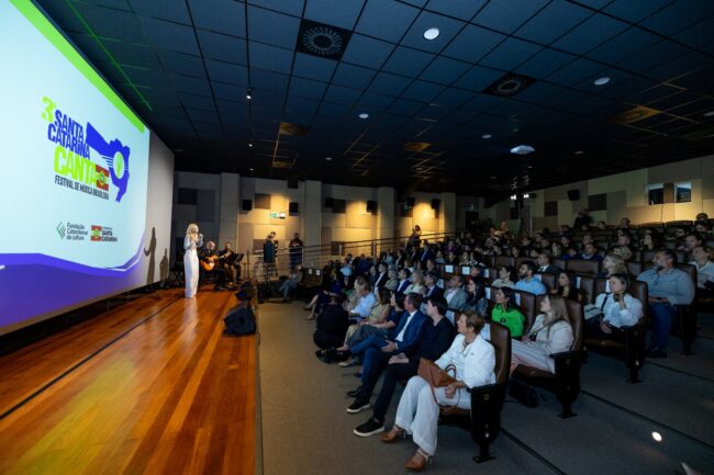 A 3ª edição do Festival “Santa Catarina Canta” foi anunciada na manhã desta segunda-feira (27), na Sala de Cinema do Centro Integrado de Cultura (CIC), em Florianópolis, e contou com a presença do Governador Jorginho Mello, da presidente da Fundação Catarinense de Cultura (FCC) Maria Teresinha Debatin, da vice-prefeita de Florianópolis Maryanne Mattos, além de participantes das edições anteriores. O lançamento marcou o início de uma jornada musical que vai percorrer todas as regiões do estado, promovendo talentos e homenageando diferentes gêneros musicais do país.