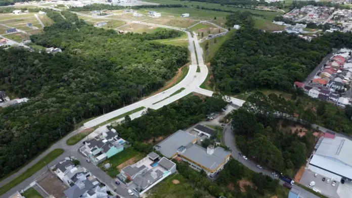 São José se prepara para inaugurar, na próxima quinta-feira (19), uma nova avenida que interliga os loteamentos Nova São José, Portal da Colina e o Distrito Industrial do Lisboa, nos limites dos bairros Sertão do Maruim e Forquilhas. A obra, realizada pela Prefeitura por meio da Secretaria de Infraestrutura, está em fase final de execução, com o asfaltamento das quatro pistas previsto para esta segunda-feira (16) e terça-feira (17), seguido pela implantação da sinalização horizontal e vertical.