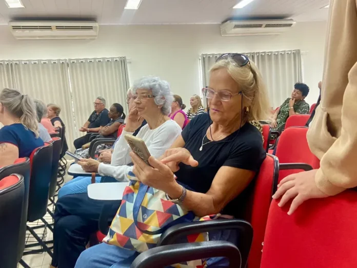 Nesta aula foi trabalhado o portal Gov.br, ensinando sobre assinatura digital, segurança e todas as funcionalidades do site. A aposentada Jane Becker, 67 anos, afirma que as aulas são essenciais devido à modernização, sem precisar depender de ninguém. “Eu mexo em tudo, mas preciso aprender principalmente para ter acesso ao banco, sou insegura”.