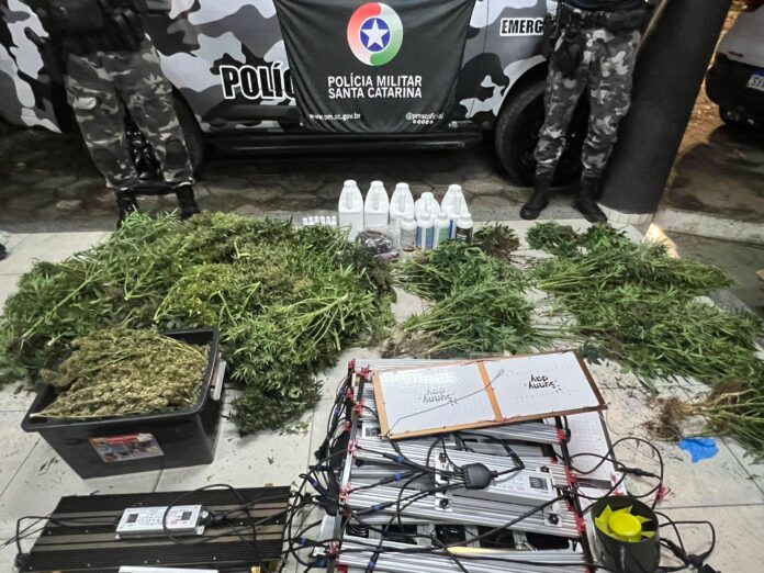 Os policiais apreenderam um total de 27 quilos de skunk, 80 pés de maconha, além de diversos insumos e equipamentos utilizados no cultivo, como lâmpadas e sistemas de ventilação. No local, um homem e uma mulher foram presos e encaminhados a Delegacia de Polícia por envolvimento com o tráfico de drogas.