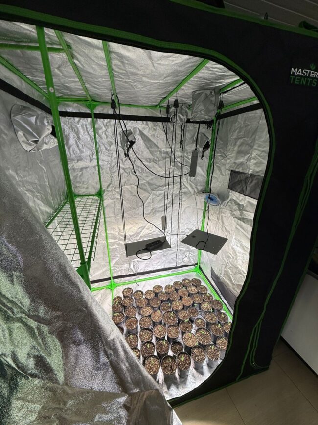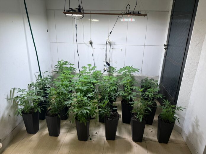 No local foram encontrados os seguintes materiais: 120 pés de maconha; 343 gramas de Skank; 75 gramas de Haxixe; uma balança de precisão; um relógio; um cordão dourado; três estufas; quatro exaustores e diversos materiais para Iluminação. Os policiais chegaram ao local ilícito através de denúncia. Atuaram na ação equipes do 16º BPM e o 22º BPM.
