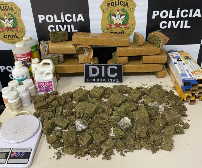 A Polícia Civil de Santa Catarina, por meio da Delegacia de Combate as Drogas (DECOD) de Palhoça, em operação realizada para dar cumprimento a dois mandados de busca e apreensão, na segunda feira (7), realizou a prisão em flagrante de um homem e a apreensão de aproximadamente seis quilos de maconha, além de insumos e equipamentos para a produção da droga em estufas localizadas no interior da residência.