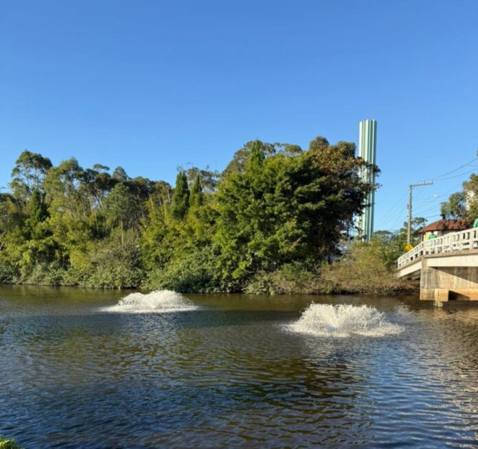 Nesta etapa, estão sendo instalados três aeradores, cada um com abrangência de 4.500 m². Os equipamentos, semelhantes a chafarizes, aumentam o contato da água com o ar, o que acelera a eliminação de compostos indesejáveis e eleva os níveis de oxigênio no ambiente aquático, contribuindo diretamente para a recuperação do ecossistema local.