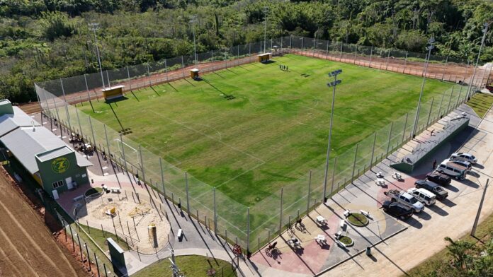 Além disso, o Complexo Esportivo Toca da Pantera tem um pátio de 188,52 metros quadrados, calçadas, paisagismo com canteiros e áreas verdes que garantem sombreamento, mobiliário urbano como bancos pré-moldados e mesas de convivência em concreto, e estacionamento devidamente sinalizado com 28 vagas, sendo duas reservadas para PcD e duas para idosos. A área de esporte e lazer ainda possui infraestrutura elétrica que atende o campo de futebol com refletores de LED de 1.200W, as edificações e o entorno.