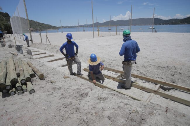 Os trabalhos começaram com a implantação de um deck de madeira em paralelo à via e separado dela apenas por uma faixa de restinga. Essa é mais uma obra da Secretaria de Infraestrutura e Manutenção da Cidade a ser entregue para a temporada de verão 2025-2026.