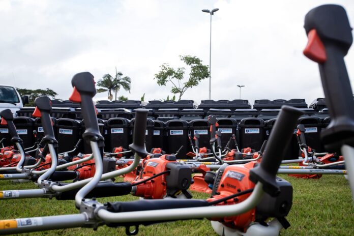 O equipamento faz parte das aquisições entregues em maio, no Dia do Gari, que incluem dois novos tratores, duas minicarregadeiras, 71 roçadeiras, 300 contentores para microlixo e 41 contentores para uso na limpeza da cidade.