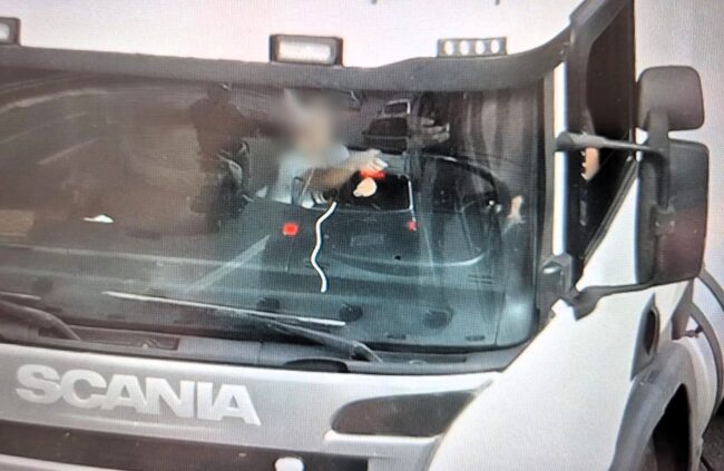As cenas observadas eram perigosas: uma das crianças estava segurando o volante do caminhão enquanto o condutor dividia a atenção com o telefone celular. A outra criança foi vista no colo da passageira, no banco dianteiro de um automóvel.