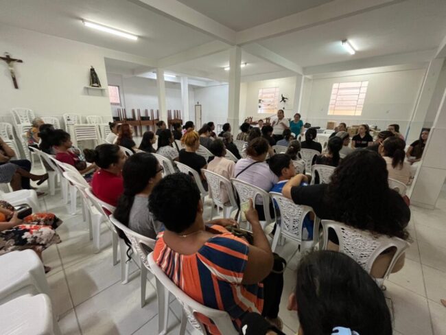 Antes mesmo das 9h desta quinta-feira (12), mais de 50 moradoras já aguardavam ansiosas no salão paroquial da Igreja Nossa Senhora Aparecida, na comunidade do Jardim Solemar, no bairro Jardim Cidade de Florianópolis, em São José, pelo primeiro encontro do ano do projeto promovido pelo Instituto Elas – Educadoras do Brasil em parceria com a Fundação Municipal Educacional (Fundesj).