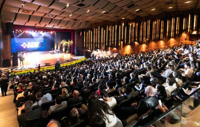 Uma noite marcada de emoção, reconhecimentos, inspiração e muita solidariedade. Assim foi a comemoração do 109º aniversário da Associação Empresarial de Florianópolis (ACIF), realizada no Teatro Ademir Rosa (CIC), na última quarta-feira, 15. Com um público estimado em mil pessoas, o teatro estava repleto de autoridades, empreendedores e formadores de opinião de Floripa e de outras cidades do país. Com uma programação diversificada, que incluiu palestra e apresentação musical, o evento teve o seu ápice ao homenagear personalidades da Capital, com a entrega das tradicionais medalhas concedidas pela entidade.