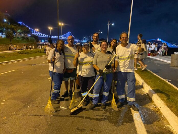 Depois de concluir a limpeza das avenidas onde ocorrem as festas públicas, 12 pessoas permaneceram trabalhando no Centro e 10 na Continental para fazer o repasse da limpeza. Também foram enviadas equipes de apoio para a força-tarefa de limpeza da orla no Norte e Sul da Ilha de Santa Catarina.