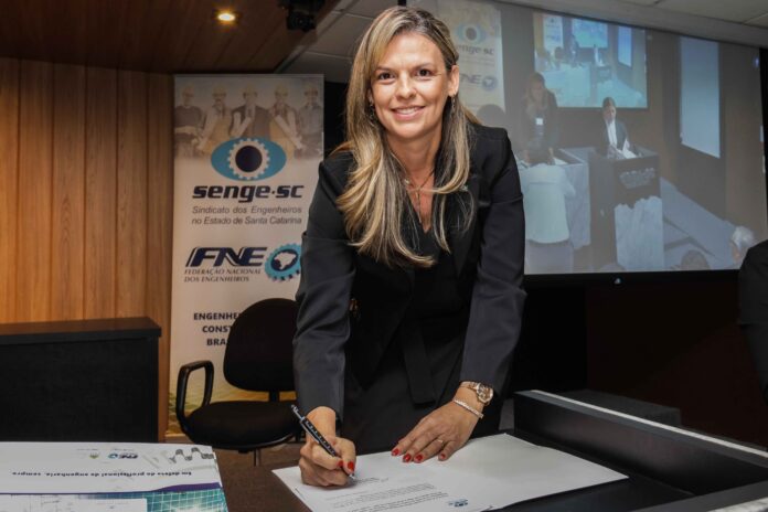 A nova diretoria do Senge-SC tomou posse na quinta-feira (24), em solenidade realizada no auditório da sede do Crea-SC, em Florianópolis, que contou com a presença do presidente da Federação Nacional dos Engenheiros (FNE), Murilo Campos Pinheiro, entre muitas autoridades, conferindo imenso prestígio à nova presidente, a engenheira civil e sanitarista Roberta Maas dos Anjos, diretoria e conselheiros.