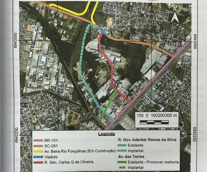 O viaduto será construído na atual interseção entre a SC-281 com as ruas Luiz Fagundes e Senador Carlos Gomes de Oliveira.