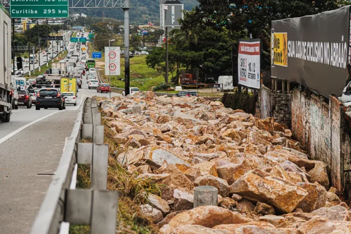 Cerca de 40 caçambas de pedras dinamitadas já foram colocadas na marginal da BR-282, a Via Expressa, no limite com Florianópolis, para formar taludes que dificultam a permanência indevida no local. Além disso, as bases para a instalação de nove postes de iluminação em LED foram concluídas. A ação integra um conjunto de medidas de revitalização em áreas estratégicas da cidade, com foco em reforçar a segurança pública e evitar ocupações irregulares.