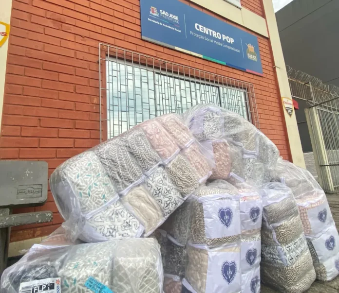 A Prefeitura de São José, por meio da Secretaria de Assistência Social, em parceria com a Legião da Boa Vontade (LBV), recebeu 80 cobertores novos na tarde desta quinta-feira (20). Os cobertores foram destinados para o Centro de Referência Especializado para População em Situação de Rua (Centro Pop). Apenas em 2024, o Centro Pop já ofertou mais de 26 mil atendimentos, dentre eles alimentação, higiene pessoal e atendimento psicossocial.