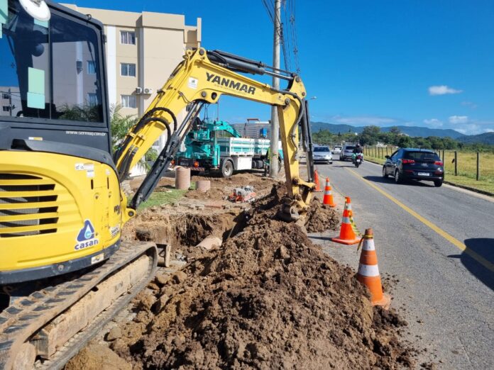 A Casan atua nos reparos, com estimativa de conclusão dos trabalhos por volta das 12h. A região de Forquilhas, principalmente nos loteamentos Lisboa e Los Angeles, será afetada por falta de água.