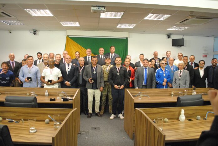 Em Sessão Solene realizada na noite desta terça-feira, 08, diversas personalidades foram agraciadas com a Medalha de Mérito Esportivo Edson Luiz de Rezende. Esta é uma honraria da Câmara Municipal de São José que visa agraciar atletas, dirigentes, árbitros e pessoas físicas e jurídicas apoiadoras do esporte no Município de São José, com reais serviços prestados a comunidade municipal.