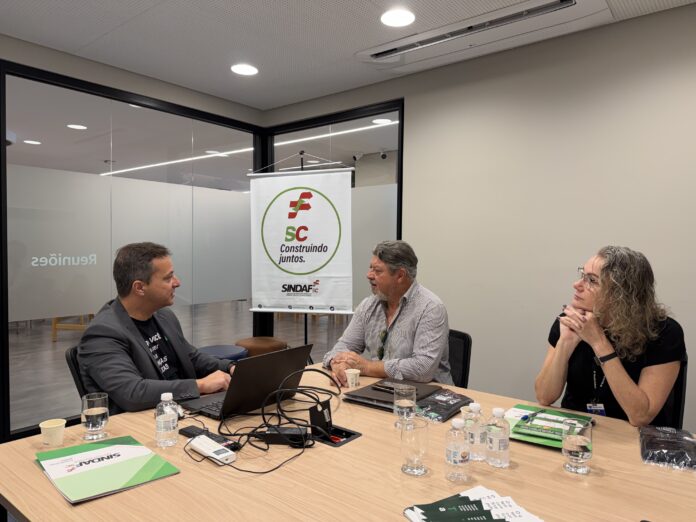Na manhã desta terça-feira (30/09), o Presidente do Sindicato dos Auditores Estaduais de Finanças Públicas de Santa Catarina (Sindaf-SC), Sandro Medeiros Alves, recebeu em Florianópolis dois avaliadores do Prêmio Nacional de Educação Fiscal – edição 2025, uma realização da FEBRAFITE (Associação Nacional das Associações de Fiscais de Tributos Estaduais), em parceria com o Ministério da Educação (MEC), a Secretaria da Receita Federal do Brasil (RFB), o Grupo de Trabalho Educação Fiscal (GT66), vinculado ao Confaz, entre outros parceiros institucionais.