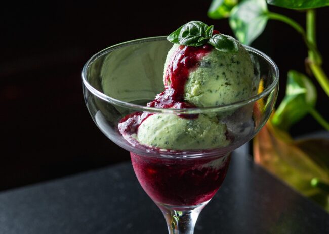 O verão costuma inspirar sabores leves, refrescantes e familiares. Mas, no litoral de Santa Catarina, duas sobremesas vêm chamando atenção justamente por romper com o óbvio. No Restaurante Raízes, a chef Jô apresenta criações que unem técnica, memória afetiva e uma boa dose de ousadia: o sorvete de manjericão com calda de frutas vermelhas e o sorvete de gorgonzola servido com calda de goiaba e redução de laranja.