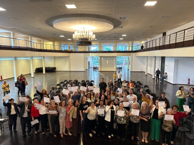 O projeto Eu Sou um 60+ Conectado, da Secretaria de Assistência Social, chega ao fim de 2025 com 128 pessoas idosas capacitadas para o uso seguro do celular. A última turma do ano, formada por 48 participantes, recebeu o certificado na sexta-feira (12), no Centro Multiuso da Pessoa Idosa (Av. Hercílio Luz, 626). O evento marcou a conclusão de mais um ciclo de formação dedicado a ampliar a autonomia digital do público 60+.