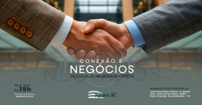 O Square SC, recebe no próximo dia 22 de abril a 1ª edição do Conexão e Negócios – Rodada de Negócios + Pitch, iniciativa voltada à geração de relacionamento comercial, novas oportunidades e fortalecimento do ecossistema empresarial instalado no empreendimento.
