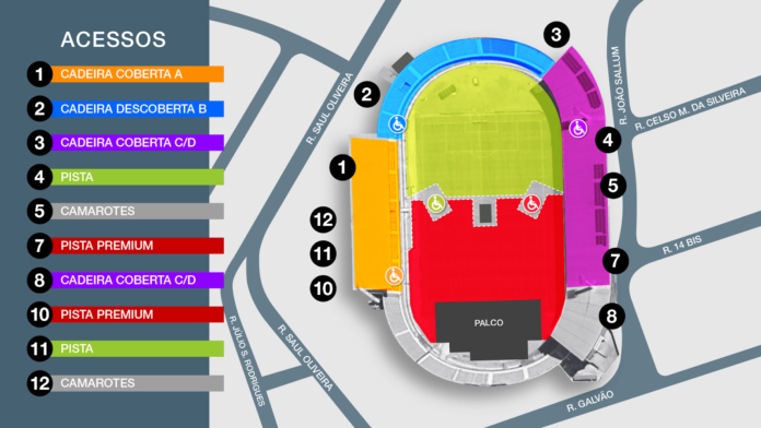 PISTA PREMIUM: Portão 7 – Setor D; Portão 10 – Setor A