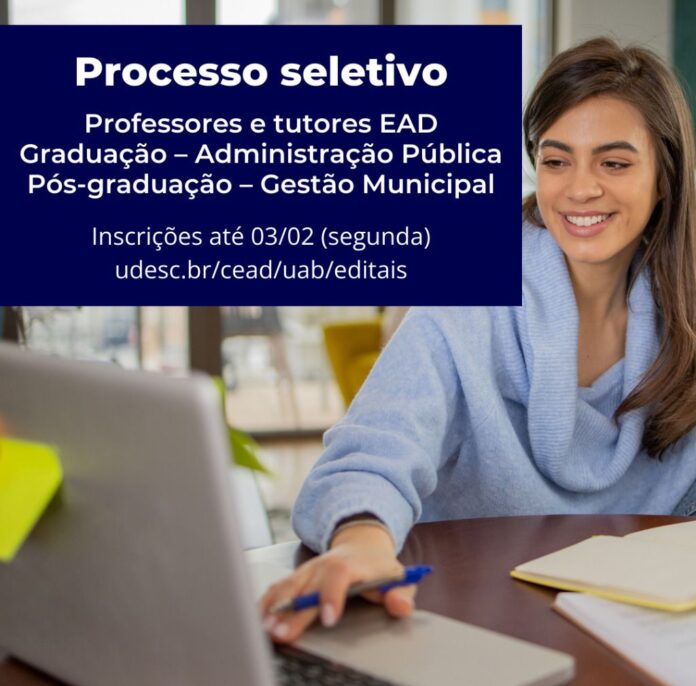 A Universidade do Estado de Santa Catarina (Udesc) está com quatro editais abertos para seleção de tutores e de professores formadores de cursos na modalidade de educação a distância (EAD) oferecidos pelo Centro de Ciências da Administração e Socioeconômicas (Esag). As vagas são para trabalhar com cursos EAD de graduação (Administração Pública) e de pós-graduação (Especialização em Gestão Municipal), que iniciam as aulas em março.
