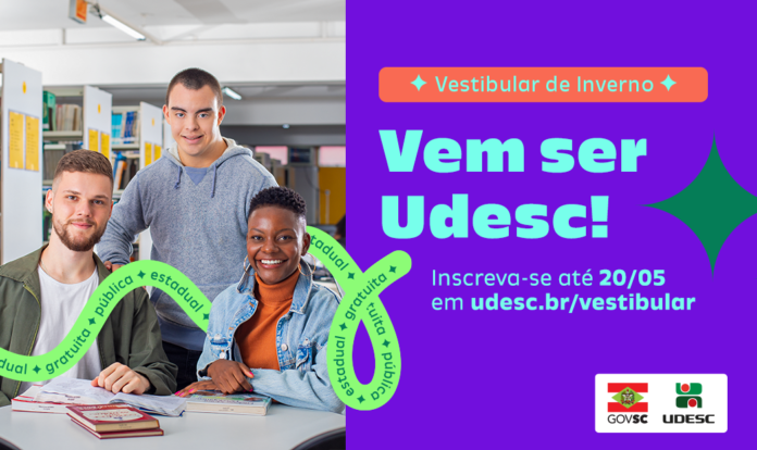 Estão abertas as inscrições para o Vestibular de Inverno da Universidade do Estado de Santa Catarina (Udesc), que oferece ao todo 1.105 vagas para o segundo semestre, em 37 cursos de graduação presenciais. As inscrições podem ser realizadas até 20 de maio em udesc.br/vestibular.