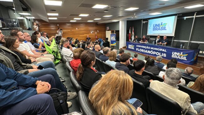 Além disso, o evento oficializou o apoio do União Brasil ao PSDB, formalizando a aliança com o candidato a prefeito Dário Berger. A chapa majoritária será composta por Maria Cláudia Goulart como vice-prefeita.