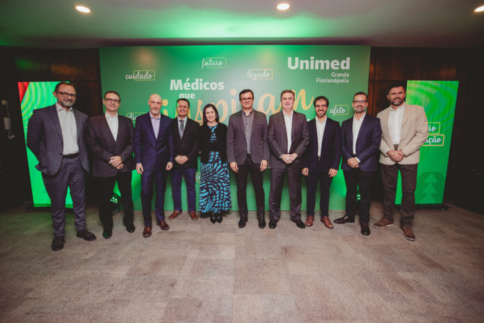 Na imagem, representantes do Hospital Israelita Albert Einstein e da diretoria da Unimed Grande Florianópolis, durante evento para médicos, na capital.