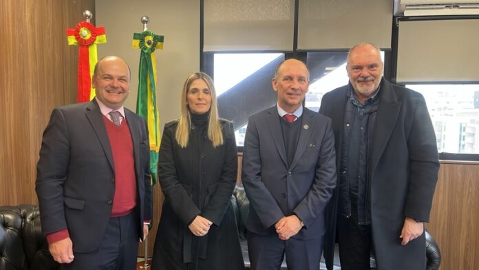 O coordenador do PPCJ, professor Paulo Márcio Cruz, e o gestor da mobilidade de alunos, professor Marcelo Buzaglo Dantas, foram recebidos pelo presidente do TRT-SC, Amarildo Carlos de Lima, e pela vice-presidente, Quézia Gonzalez.