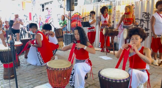 A vivência apresentou parte do processo artístico do projeto “Aquilombar-se em Desterro”, que está em desenvolvimento e dará origem ao primeiro espetáculo cênico-musical autoral do coletivo. Reconhecido como o primeiro coletivo afrocentrado de Santa Catarina dedicado à pesquisa da cultura mandengue, o Mandinga Preta é formado por artistas negros que atuam na música, dança, teatro, performance, produção e arte-educação.