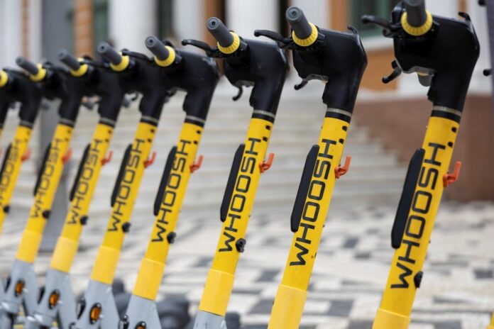 A Whoosh é uma empresa internacional de tecnologia que desenvolve e implementa de forma independente soluções de transporte de micromobilidade, por meio do uso de patinetes. A empresa que gerencia o serviço, também lançou uma escola de condução para garantir a segurança dos usuários. As patinetes da marca são equipadas com o seu próprio módulo Whoosh IoT (Internet of Things), que permite controlar totalmente o estado e as condições do veículo, incluindo bloqueio de velocidade e monitoramento de rotas. Os dados recebidos dos equipamentos permitem a criação de relatórios analíticos sobre micromobilidade, que podem ser de informação muito útil para as autoridades urbanas responsáveis pelo planeamento e desenvolvimento de políticas ambientais das cidades onde a Whoosh opera. Mais informações no Link